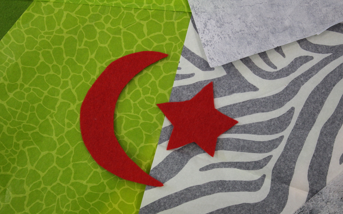 Saviez-vous qu’on avait oublié les formes et les couleurs du drapeau algérien à l’indépendance du pays ? Saviez-vous qu’il en existe une infinité de variations selon les couturier·ères qui l’assemblent ? À partir de cet épisode méconnu de l’histoire de l’Algérie présenté par Katia Kameli dans l’exposition, fabriquez à votre tour un drapeau. Fouillez dans les malles de tissus, explorez les blasons des héros et héroïnes d’hier et d’aujourd’hui et plongez-vous dans l’histoire des symboles pour réaliser un étendard.