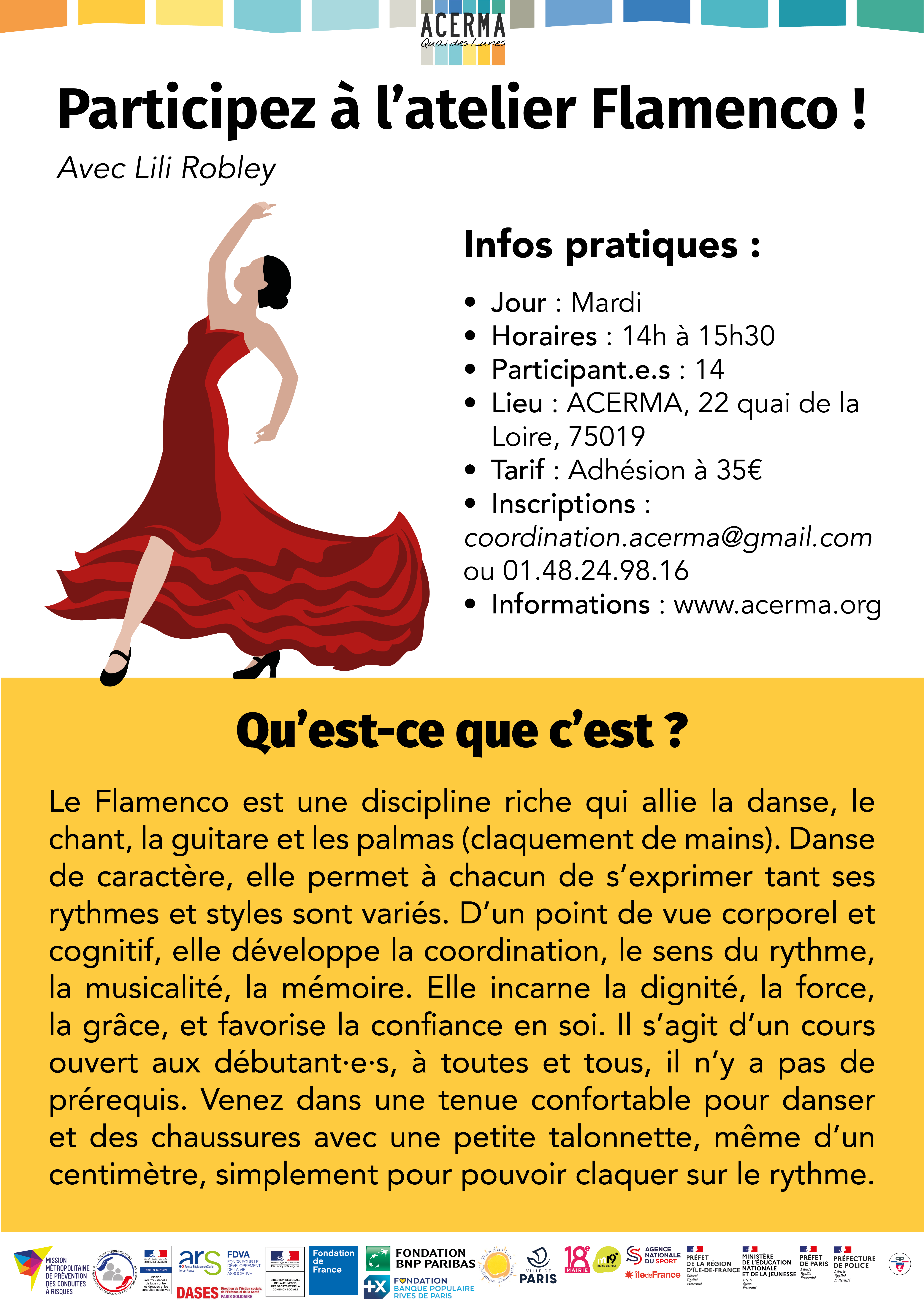 Vous avez toujours rêvé de danser le Flamenco ?! Alors cet atelier est fait pour vous.