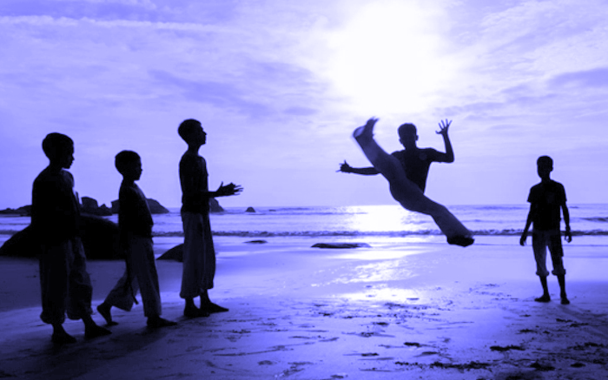 Art martial du Brésil se pratiquant avec un accompagnement musical. À la fois lutte et danse, rituel et jeu, la capoeira fut pratiquée à l'origine par les esclaves pour dissimuler un entraînement au combat qui leur était interdit.