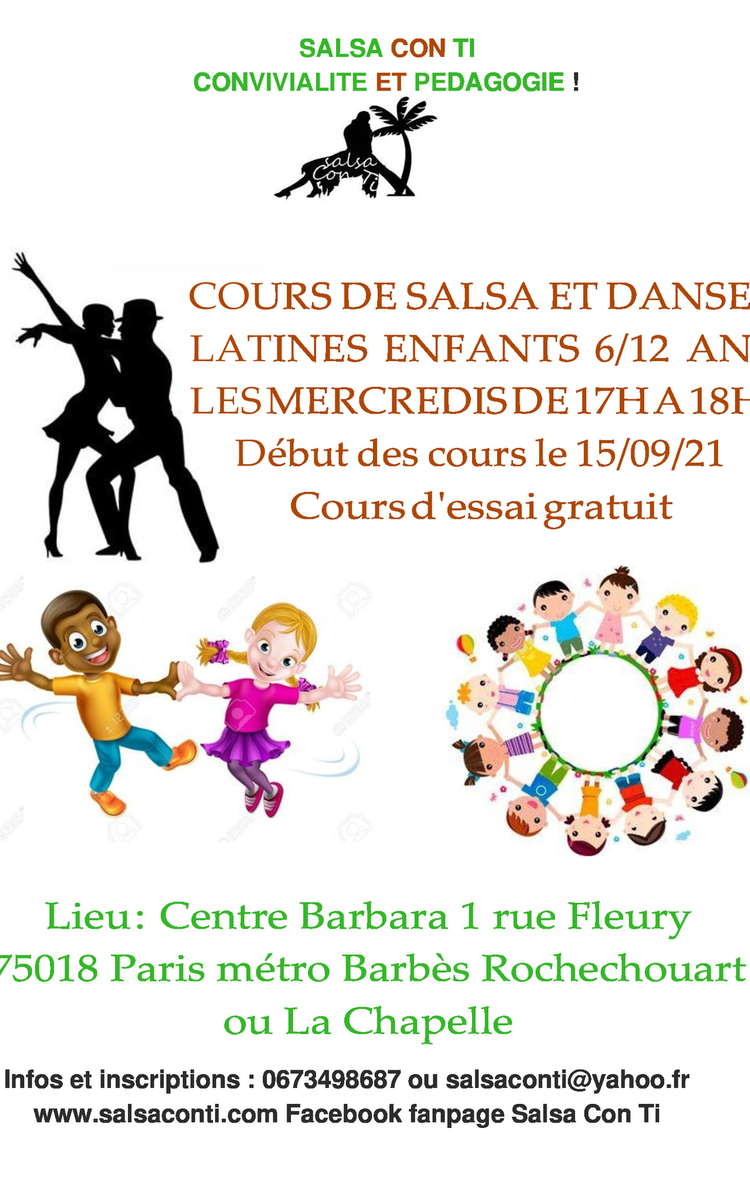 Salsa Con Ti propose un cours de salsa, bachata et danses latines enfants tous les mercredis de 17h à 18h au Centre Barbara.