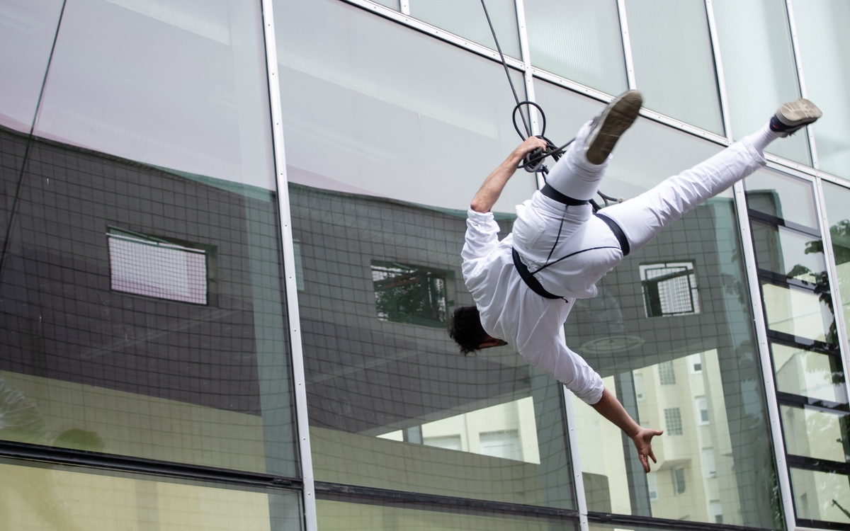 La danse verticale est une activité composée de mouvements de danse ou d'escalade improvisés et exécutés en hauteur. Elle consiste à suspendre les danseurs et danseuses à un mur à l'aide de cordes et de harnais, pour sembler défier la gravité en dansant sur des surfaces verticales.