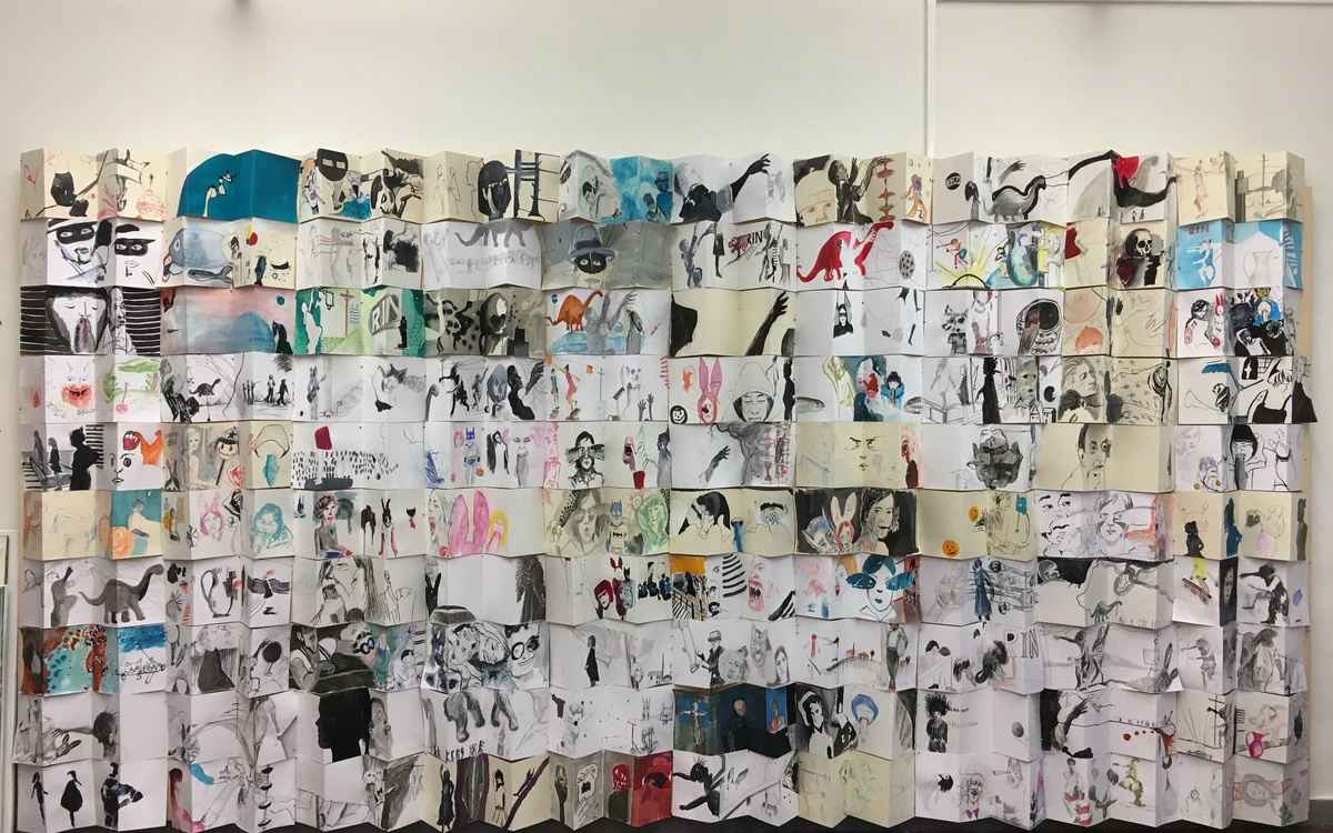 Ainsi, une lecture, une image, un objet, une rencontre fortuite, un procédé technique deviennent des matières malléables qui peuvent déclencher l’envie de faire, de se mettre à dessiner. Ce sont autant des sollicitations à faire apparaître qu’une matière à penser.