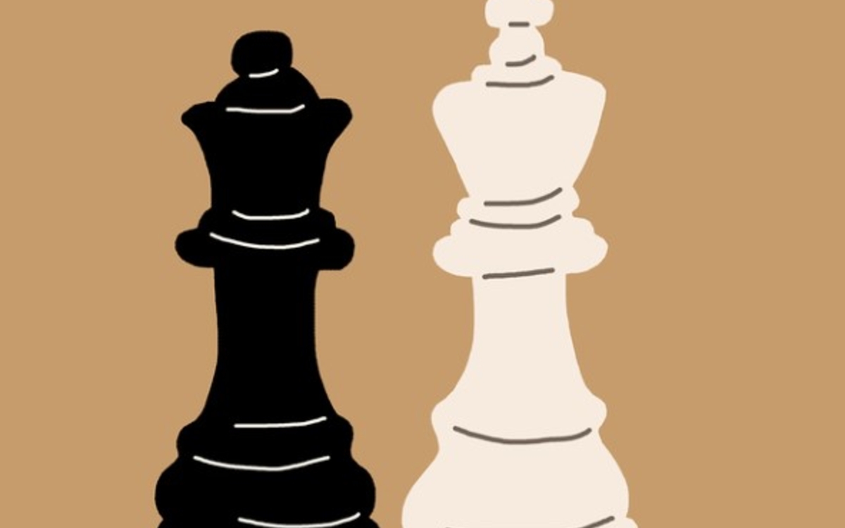 Le jeu d'échecs oppose deux joueurs de part et d'autre d'un plateau appelé échiquier composé de 64 cases claires et sombres nommées les cases blanches et les cases noires. Les joueurs s'affrontent à tour de rôle en déplaçant l'une de leurs seize pièces, claires pour le camp des blancs, sombres pour le camp des noirs.