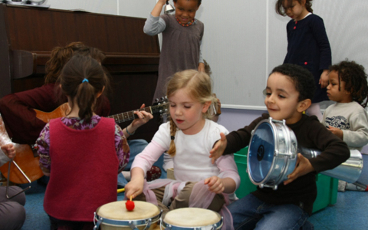 Dans un cadre collectif, de développer chez les enfants la musicalité et la formation de l'oreille grâce à des comptines et des chansons, le jeux de doigts. L'acquisition de premières notions musicales (fort/faible, lent/rapide, aigu/grave) se fera par l'expression corporelle et la manipulation d'instruments.