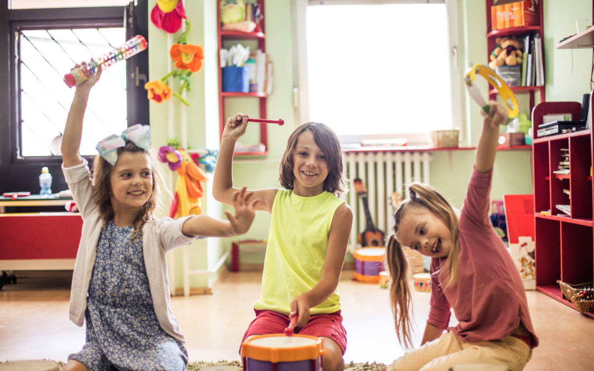Utilisation des instruments. Développement de la concentration, l'écoute du « tempo ». Approche du langage musical pour les plus grands, avant l'apprentissage d'un instrument.
