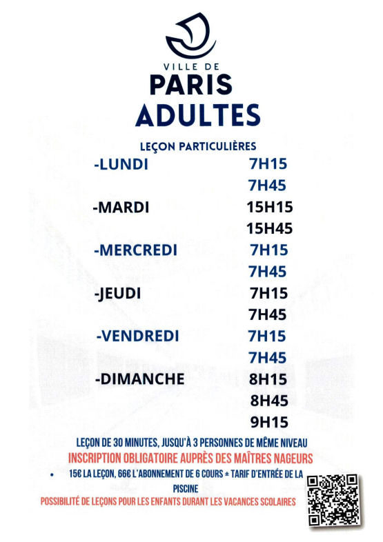 Pour les inscriptions aux créneaux proposés durant lesvacances scolaires, vous devez vous rapprocher des maitres-nageurs une à deux semaines avant les vacances.