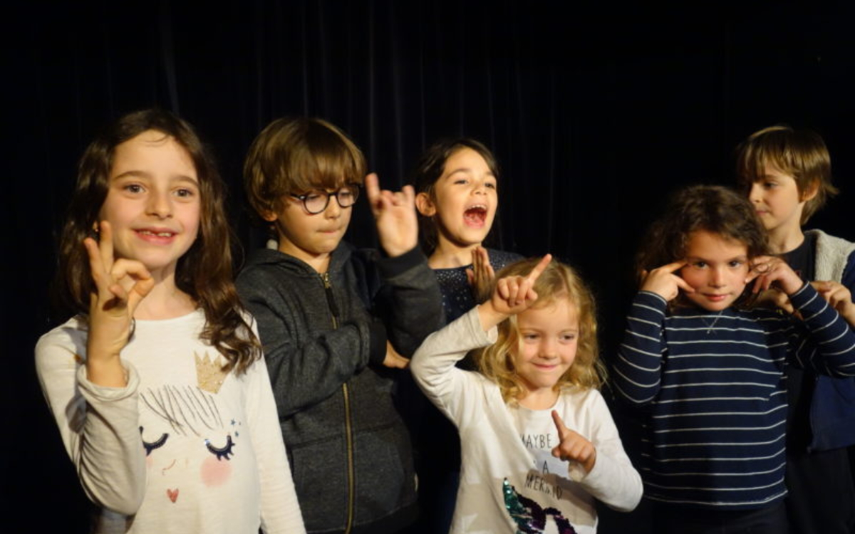 Ce stage Théâtre/Langue des signes permet la découverte du théâtre visuel, burlesque : découvrir d’autres moyens de communiquer avec l’autre/les autres, s’exprimer avec son corps, avec ses mains qui deviennent outils de jeux et de découverte de la différence… Le stage Théâtre/Langue des signes (LSF) — dirigé par Flavie, comédienne entendante et Thomas, comédien sourd — est basé sur la découverte d’une langue gestuelle et visuelle, sur l’expressivité du corps (démarches, personnages), des imitations corporelles, des jeux de signes, de mime, de comptines, d’imaginaire visuel… le tout en s’amusant puisque le théâtre, c’est jouer !