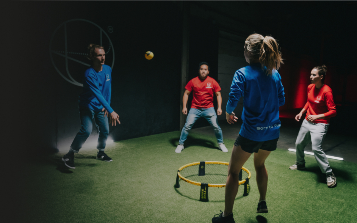 Le twist Urban : le roundnet version indoor, avec des murs qui favorisent les rebonds, sans modération ! Un concept unique proposé par Urban Roundnet.