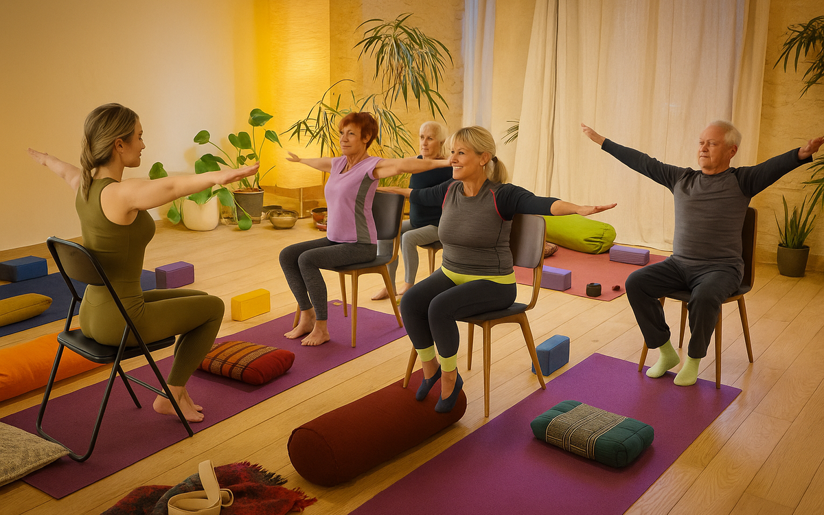 Accessible à tous, le yoga seniors et sur chaise favorise mobilité, équilibre et détente en toute sécurité. La chaise sert de support pour adapter les postures, soulager les articulations et renforcer la confiance. Cette pratique douce améliore la santé, le sommeil et le lien social, sans recherche de performance.
