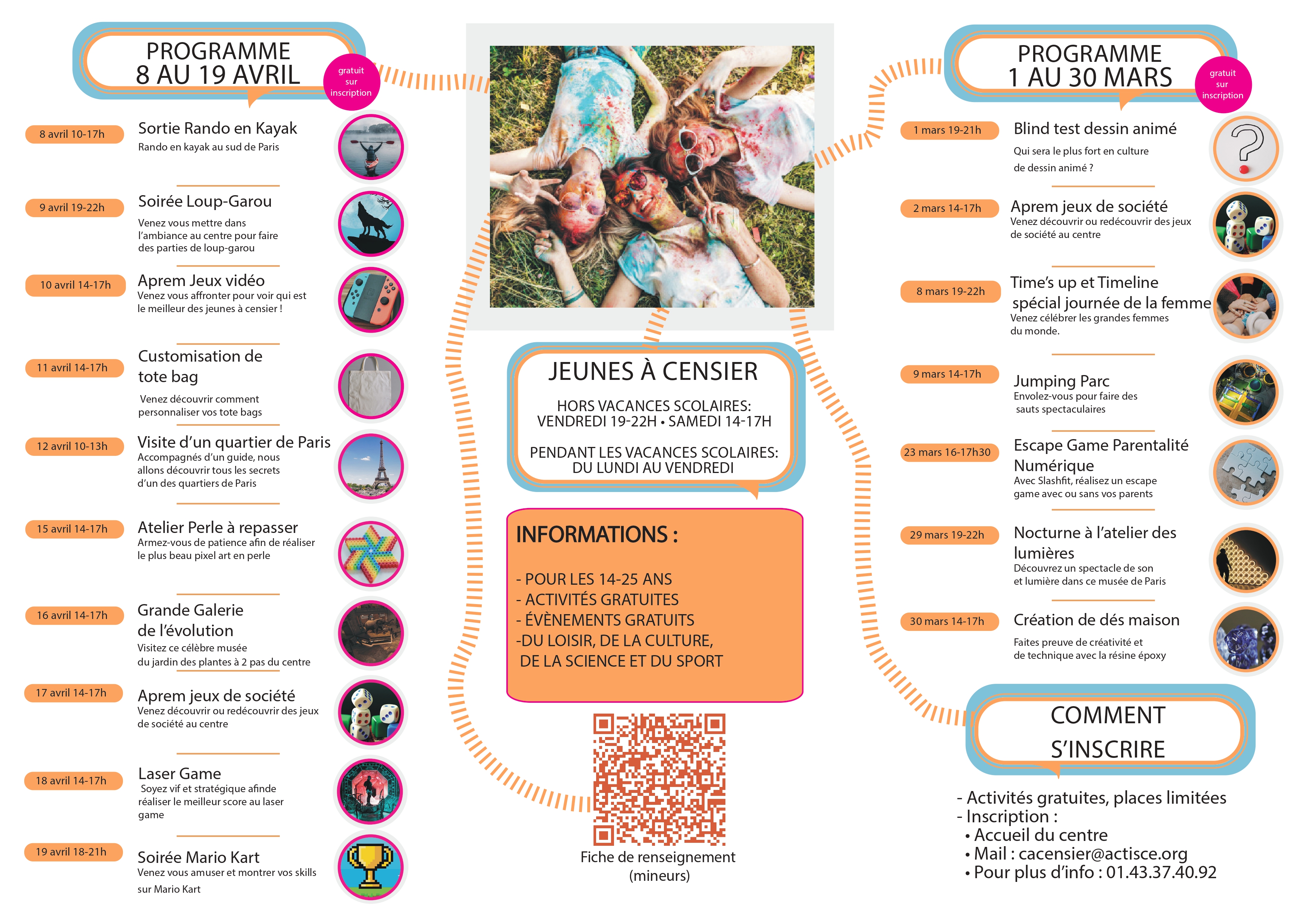 [14-25ans] Jeunes à Censier : Programme d'activités gratuites en Mars-Avril