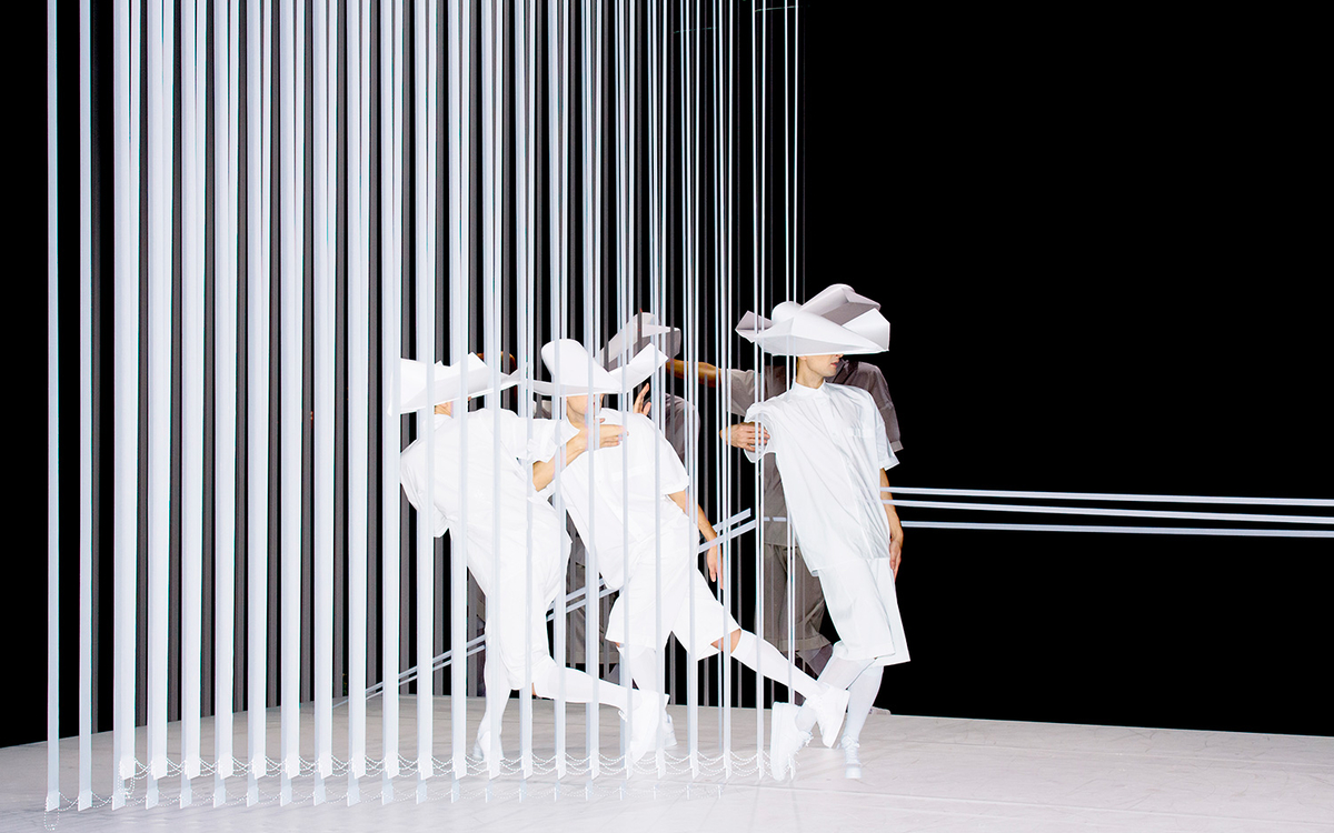 L’univers pictural, au sein duquel les tableaux mouvants mêlent matières dansées et chorégraphie du décor, s’appuie ici sur la notion d’aberration d’optique, laquelle provoque des déformations géométriques et chromatiques qui enrichissent la perception de l’image recomposée. À ces impressions hypnotiques et persistances rétiniennes se conjugue une création musicale captivante, une électro harmonique aux accents baroques, la pureté de l’orgue s’habillant si bien de blanc…