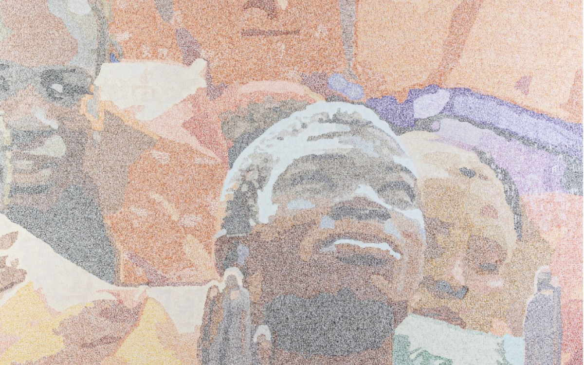 Un bleu profond et quelques filets de pêches qui recouvrent les parois et ornent le sol de l’espace parisien donnent à l’exposition une dimension immersive voire dramatique. « Je veux parler de ces sujets » poursuit-il, « l’émigration est aujourd’hui encore, une douloureuse réalité́. Jusqu’à maintenant le succès d’une vie ne s’envisageait qu’en Europe ou aux Etats-Unis. Je veux montrer aux jeunes générations qu’il peut y avoir un avenir en Afrique. »