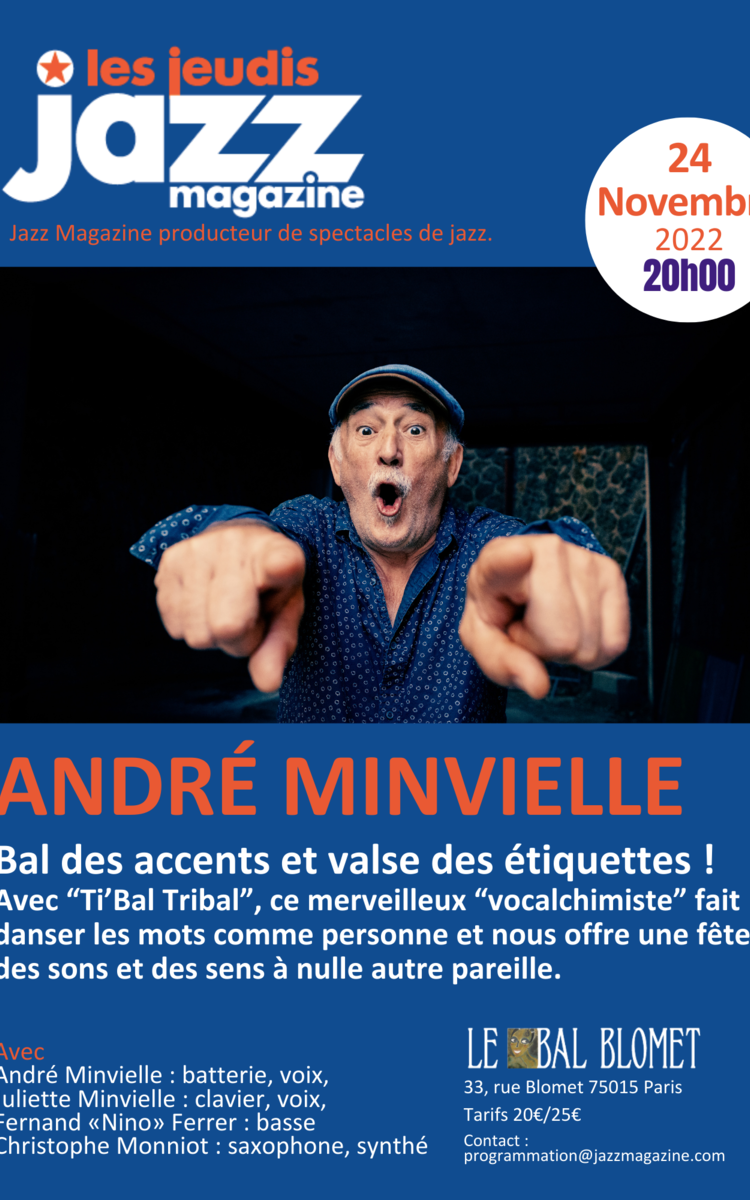 Bal des accents et valse des étiquettes, André Minvielle le merveilleux "vocalchimiste" fait danser les mots comme personne et nous offre une fête des sons et des sens à nulle autre pareille. Avec Juliette Minvielle, Fernand Ferrer, Christophe Monniot…