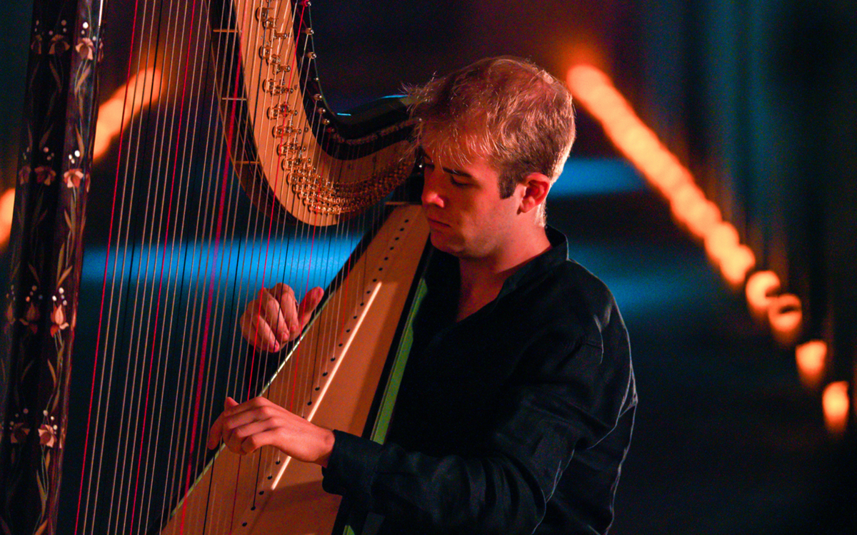 Le harpiste Parker Ramsey à l'honneur sur compositions musicales de Michael Jarrell, David Fulmer et Josh Levine.
