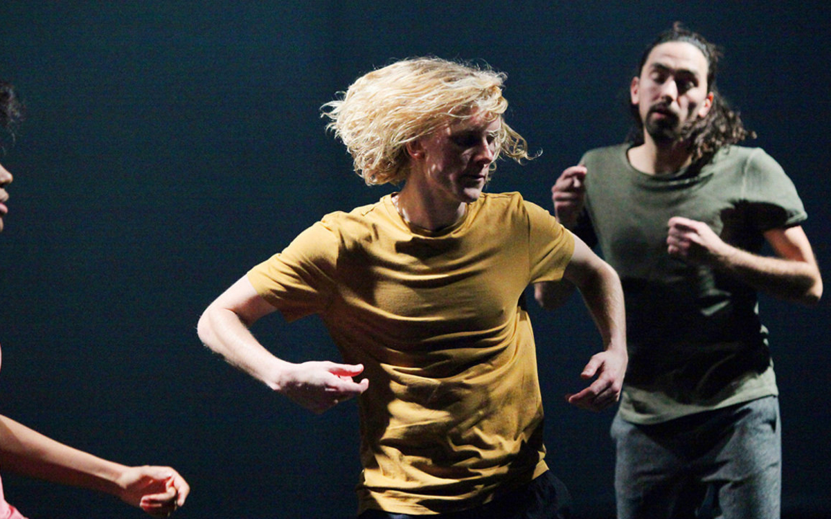 Sur un plateau nu, deux danseurs et une danseuse bougent sans jamais s’arrêter. Leurs gestes semblent répétitifs mais se transforment bientôt en un mouvement ondulatoire et hypnotique, un crescendo vers l’exultation, conjugués à une musique électronique composée pour la pièce et à un jeu de lumière dense. C’est à une expérience sensorielle et immersive qu’invite Arno Schuitemaker, où l’énergie submerge le public par vagues jusqu’à un point de bascule, quand le chorégraphe ne donne plus à voir que des fragments d’images et invite à regarder différemment, mieux.