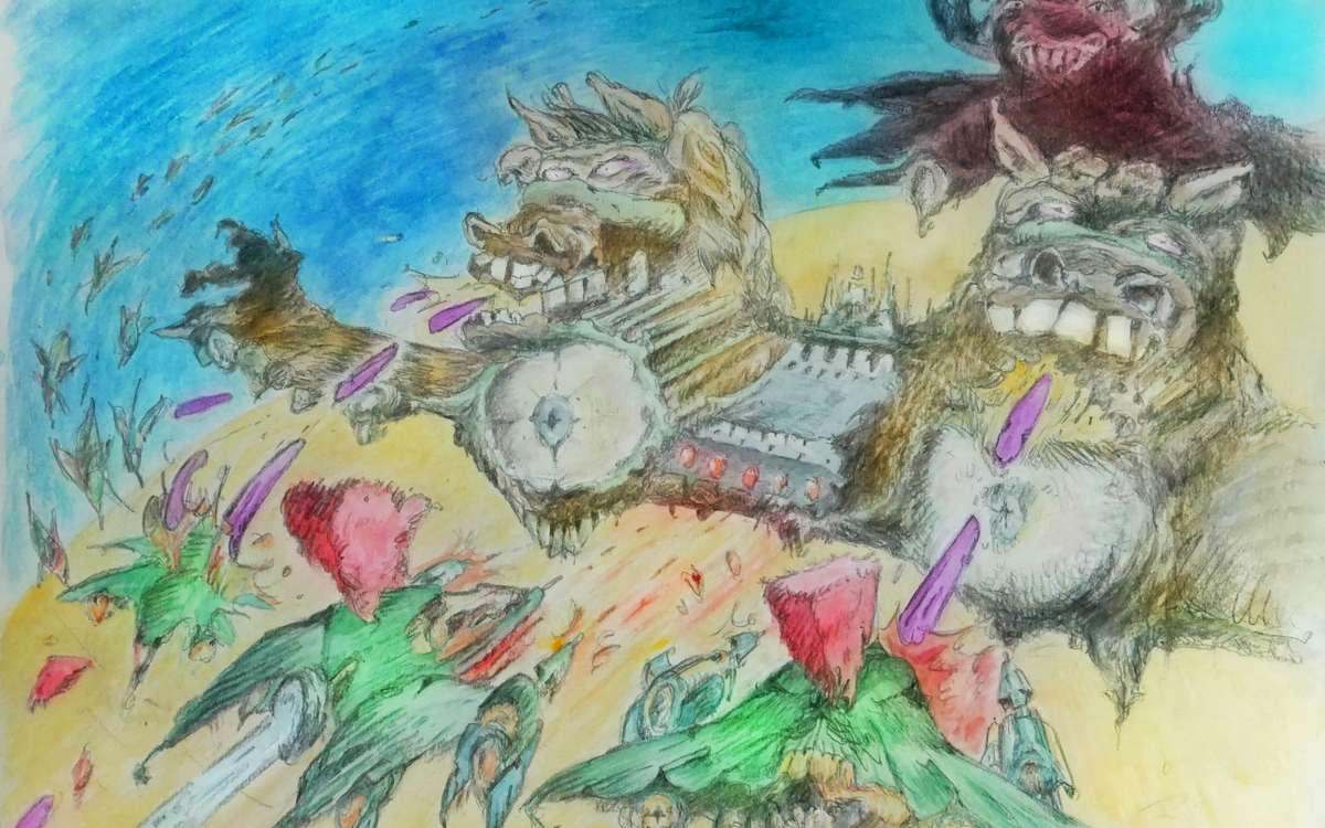 En partant de sa propre pratique et de celle de plusieurs artistes contemporains (notamment Lily Van der Stokker, Michel Blazy, Gelitin), Arnaud Dezoteux interviendra par le dessin et la peinture sur des vues imprimées de l'espace d'exposition de la Fondation et du café Mirette. L’atelier proposera d'appréhender la gouache comme un pouvoir pour modifier la réalité et nous plonger dans une dimension onirique ou inquiétante. Les enfants peignent sur les vues d'architecture après avoir pris connaissance du synopsis suivant : "Après qu'une maxi-tempête, couplée d'un tremblement de terre de magnitude 7.2, se soit abattue sur la ville de Paris, les locaux de la Fondation Pernod Ricard se retrouvent sans dessus-dessous. Dans la café Mirette, l'effondrement du plafond a engendré l'apparition écrasante des machines de fitness situées normalement au premier étage. On voit un rameur encastré dans la bibliothèque, ou encore un tapis roulant planté sur le comptoir de bar jaune et marron. Tout autour, les murs se fissurent et laissent apparaître le réseau électrique à haute tension du bâtiment. Il pleut, il gronde dans le café ! Les câbles électriques trempent bientôt dans des flaques gigantesques et risquent de causer des électrocutions. Des nuisibles (comme des rats, des punaises de lit ou des berger ; australiens revenus à l'état sauvage) se baignent, s'électrocutent, se restaurent, se cultivent, peignent peut-être. Des tâches nacrées ornent aussi les murs et se mêlent aux repas et spiritueux oubliés avant la tempête. Un peu plus loin, les ravages causés par le tremblement n'ont pas épargné la verrière de la galerie. aussi des vestiges. Après s'être fait secouer comme dans une boule à neige, un wagon de Ter s'est retrouvé propulsé en pleine exposition. Il triomphe au milieu des bris de verre, des œuvres d'art, des gestes curatoriaux, mais aussi des vestiges provenant du chantier interminable de la rue Amsterdam."
