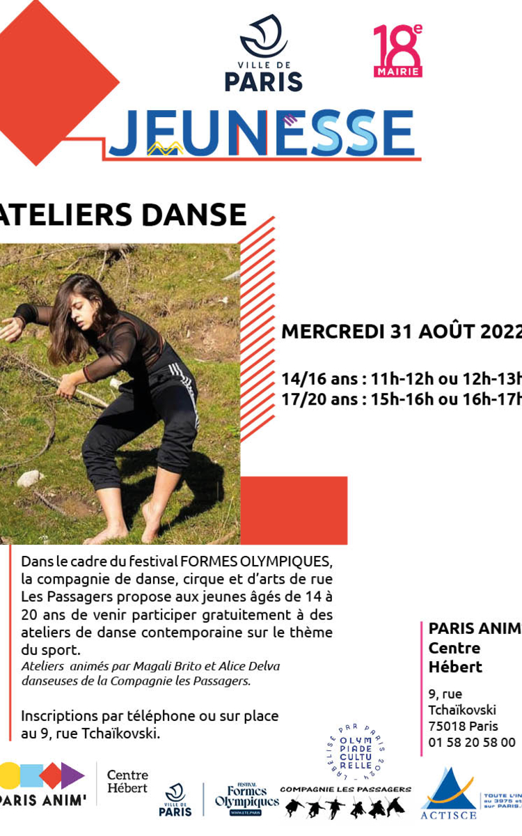 La compagnie de danse, cirque et d'arts de rue propose aux jeunes de venir participer gratuitement à des ateliers de danse au sein du centre Paris Anim' Hébert le 31 août prochain.