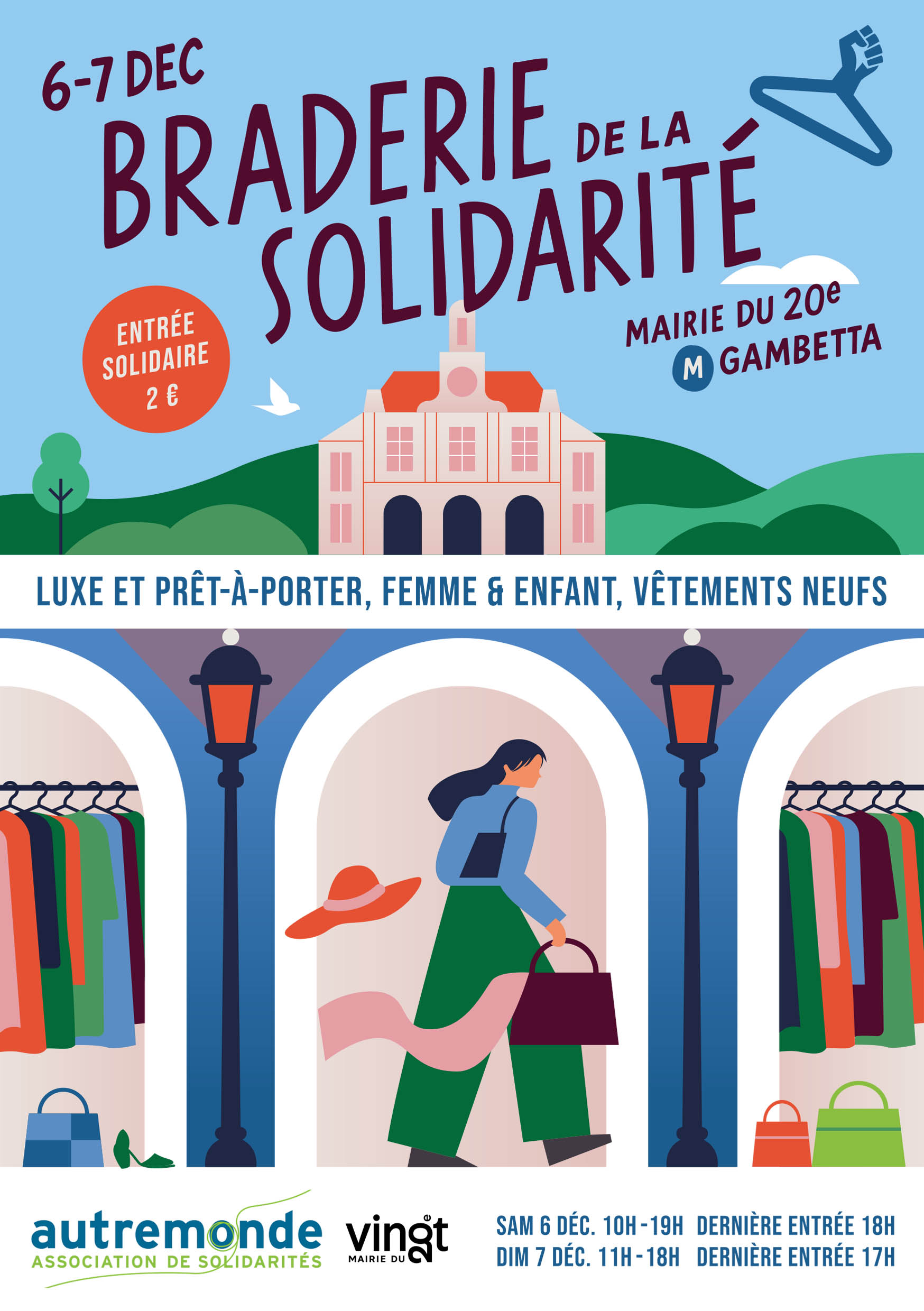 Chaque année, l’association autremonde organise une braderie de vêtements, déco et bijoux neufs du milieu de la mode à petits prix. Cet événement solidaire contribue de façon importante au financement des actions de l’association : accueils de jour et de nuit, maraudes, cours de français, activités culturelles et sportives.