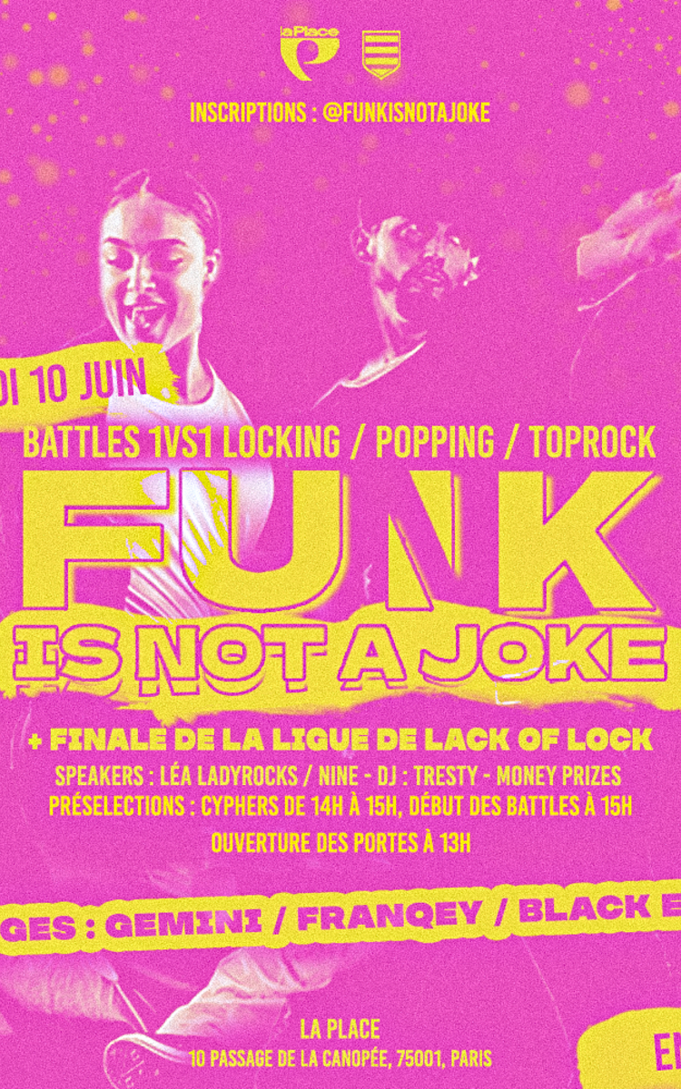 Le Funk is not a Joke c’est la célébration du Funk Style ! Cette année, Le Funk is not a Joke grandit et sera accueilli à La Place pour une édition exceptionnelle.