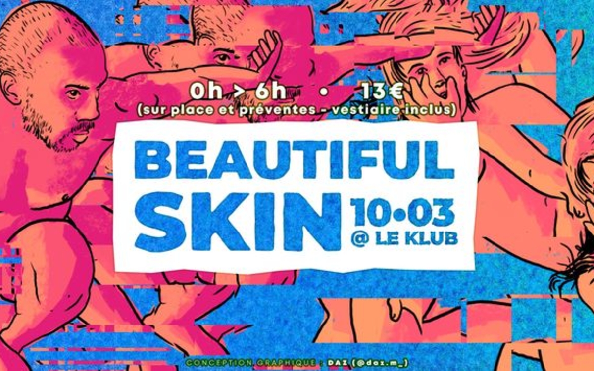 Beautiful Skin loves you ! Le clubbing naturiste plein de joie et d'amour revient pour une fête dans le plus simple appareil. Au programme, Dj sets, performances, stands et surprises, le 10 mars à partir de 00h00, au Klub !