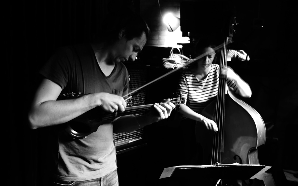 Un voyage hors du temps assuré grâce à une batterie reconstitué à partir de percussion du monde entier et un violon électrique à la forme inspirée d’un crâne de chien.