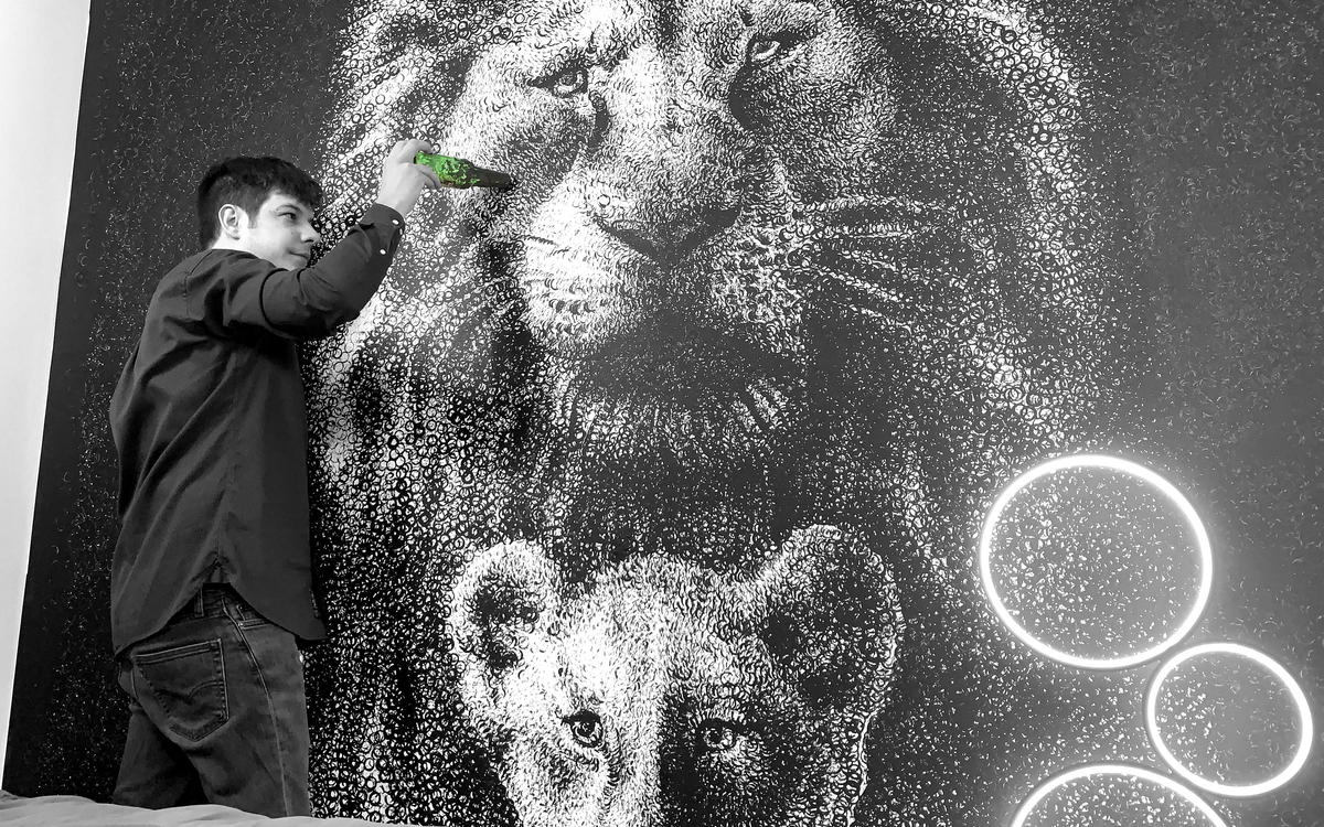 Observez et participez à la création d'une œuvre unique avec le concept du Bottlepainting. Vous avez l'opportunité t'apportez votre pierre à l'édifice en participant à la création de XELA à la Terrasse des Jeux.