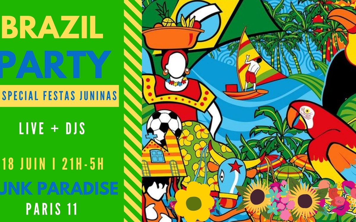 Le mois de juin est la fête de la St-Jean et au Brésil !! L'une des plus importantes manifestations du folklore populaire brésilien se tient durant le mois de juin et en juillet. Les festas juninas célèbrent plusieurs saints : saint Antoine le 23 juin, saint Jean le 24 juin, saint Pierre le 29 juin… Ces fêtes sont associées à la fête païenne du solstice d'été et à la période de la récolte. RDV le samedi 18 Juin pour une soirée brésilienne spécialement dédiée à cet événement fort dans la culture du Brésil avec live et Djs pour danser toute la nuit entre forro, samba, axé, musiques afro-brésiliennes, MPB, nordeste, carimbo, balle funk et électro do brasil !