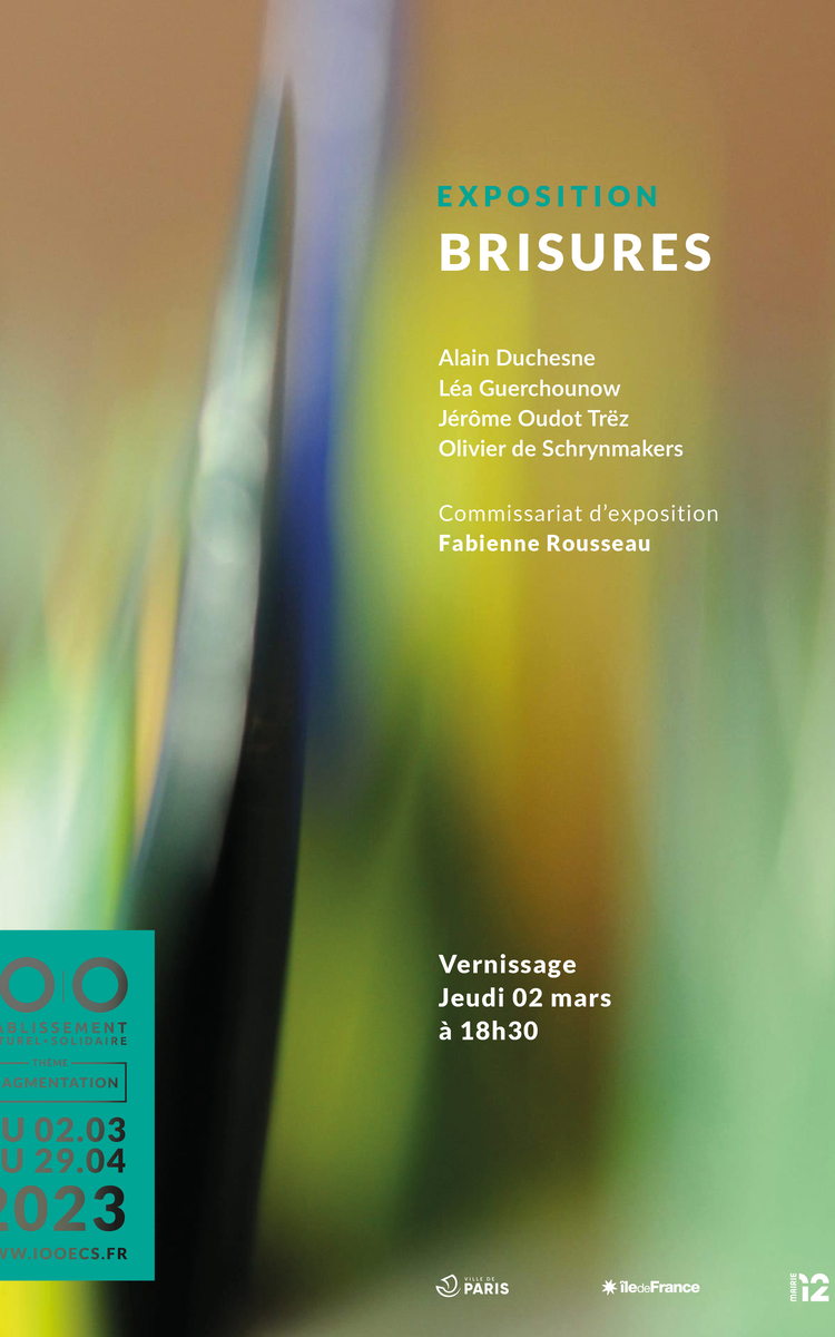 Une brisure est synonyme d’un fragment. Une partie réunie à une autre partie est un assemblage de fragments dans une recomposition qui peut être aléatoire…Et c’est donc par fragment, brisure, ellipse, synecdoque que les artistes exposés ont choisi de nous inviter dans leur monde.