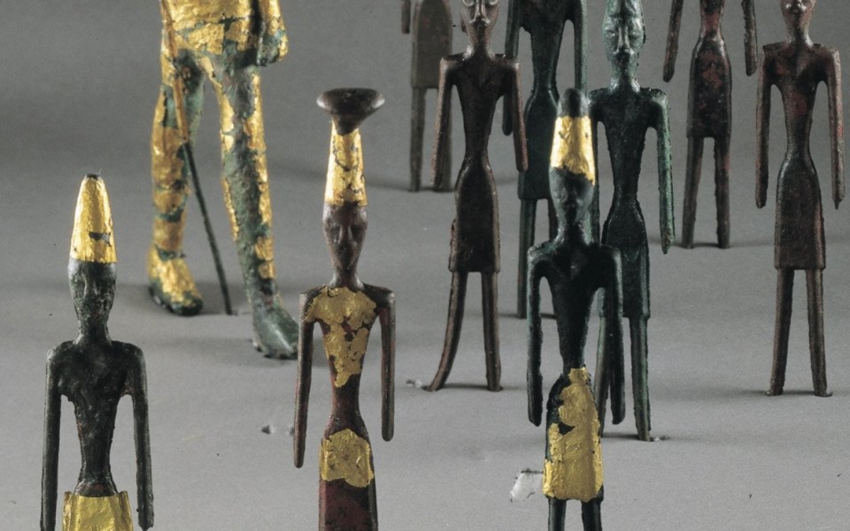 Les trésors découverts dans la nécropole royale et les temples de la cité du début du IIe millénaire av. J.-C. constituent l’un des temps forts de l’exposition. Elle en présente une sélection, provenant des tombes des rois de Byblos Abi-Shemou et Yapi-Shemou-Abi : vaisselle d’or et d’argent, parures en or incrustées de pierres semi-précieuses, miroirs, armes d’apparat… Beaucoup de ces pièces dénotent une forte influence égyptienne ; certaines proviennent mêmes directement d’Égypte, cadeaux des pharaons Amenemhat III et IV. Les dépôts votifs du Temple aux obélisques ne sont pas moins riches : figurines de faïence, haches fenestrées en or et en argent, poignards d’apparat, bijoux… accompagnent le cortège impressionnant des centaines de figurines humaines en bronze, parfois plaquées d’or.