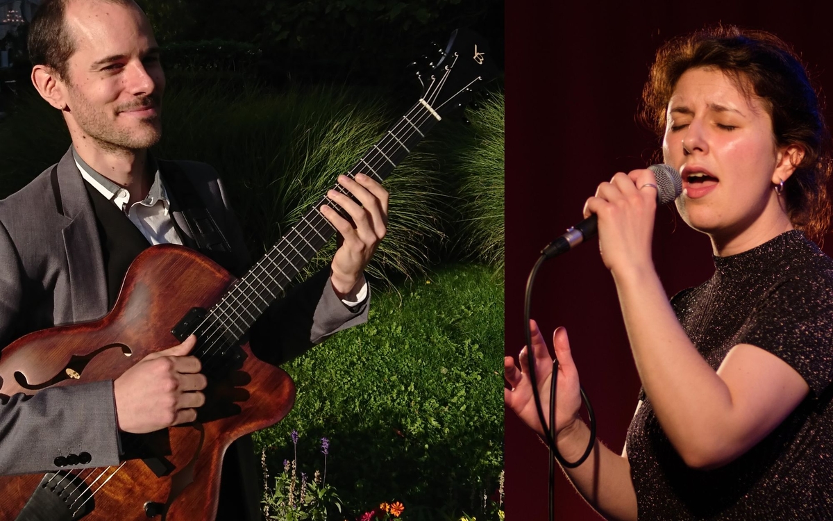 Le Carmine Duo, composé de Claire Nouet au chant et Matthieu Kochersperger à la guitare partage son amour des plus beaux standards de jazz. La voix douce et chaleureuse de Claire portée par l’impeccable swing de Matthieu ravit de fraîcheur et de gaieté. Ces deux musiciens anciens étudiants du Centre des Musiques Didier Lockwood se produisent régulièrement à Paris, changeant leur répertoire au fil des saisons et de l’humeur et gardant leur invariable volonté de faire vivre la Musique.