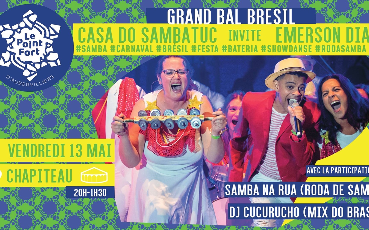 Voyage de Rio et São Paulo jusqu'à Bahia, Olinda et le nord du pays pour transpirer aux rythmes de la samba, la batucada, l'axé, le carimbo, la MPB, le forro ou les sonorités afro-brésiliens !! On vous attend au magnifique chapiteau de 500 places du POINT FORT situé à la sortie du de la ligne 7 du métro Fort d'Aubervilliers. Vamos farrear galera !!