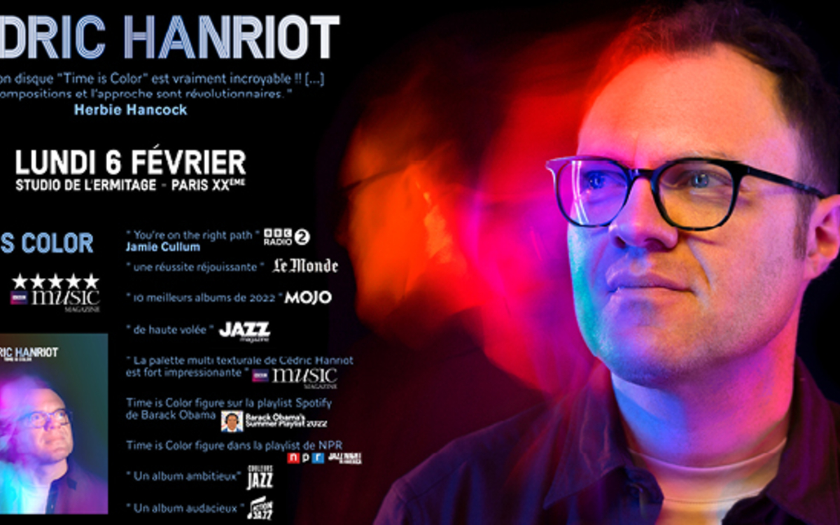 Lauréat de bourses prestigieuses et de récompenses internationales, Cédric Hanriot est reconnu dans le monde entier pour ses collaborations avec Herbie Hancock, Terri Lyne Carrington, Robert Glasper, Donny McCaslin et autres grands noms du jazz. Avec Time is Color, deuxième album sous son propre nom, Cédric Hanriot s'engage dans une création vivante résolument personnelle et ancrée dans son temps.