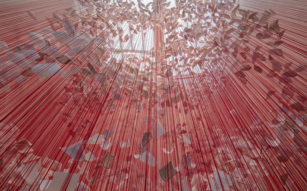 « Memory under the Skin » de l’artiste japonaise Chiharu Shiota propose aux visiteurs un parcours envoûtant à travers une spectaculaire installation tissée in-situ et un ensemble de nouvelles sculptures de fils.