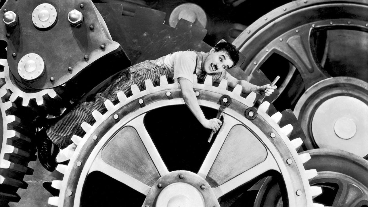 Confronté à l’arrivée de la technologie dans son usine, Charlot, ouvrier sur une chaîne de production, déclenche une énorme pagaille !