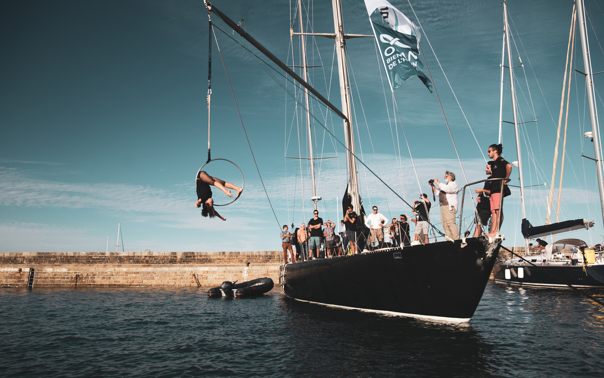 Elemen’Terre, pour réaliser une tournée de spectacles à faible émission carbone grâce à leurs trajets à bord du voilier Pen-Duick VI.