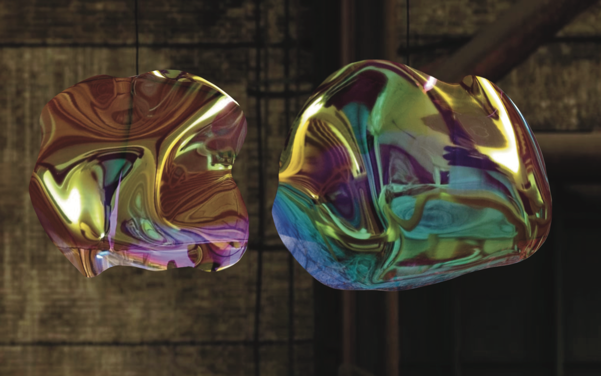 Installation - Les Maeves sont des suspensions qui réfléchissent la lumière et créent des jeux de couleurs et d'ombres. Ces œuvres résonnent avec l'environnement, habitant l'espace dans un jeu subtil d'apparition et de disparition. Le processus de création s’appuie sur les techniques d’art verrier, comme le soufflage et le thermoformage. Les reflets iridescents créés par ces vitraux contemporains, comme des gouttes, seront portés par la voix douce et la musique de Léa Petges afin d'inspirer la méditation et une spiritualité profonde.