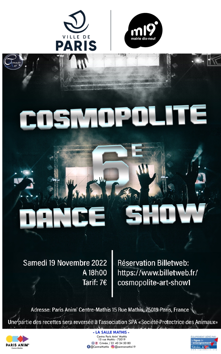 Le Cosmopolite Dance Show présente des prestations de danseurs ou groupes de danseurs de différents styles. Cela ne concerne que des danseurs amateurs, afin de leur donner l'opportunité de monter sur scène et de se faire connaître.