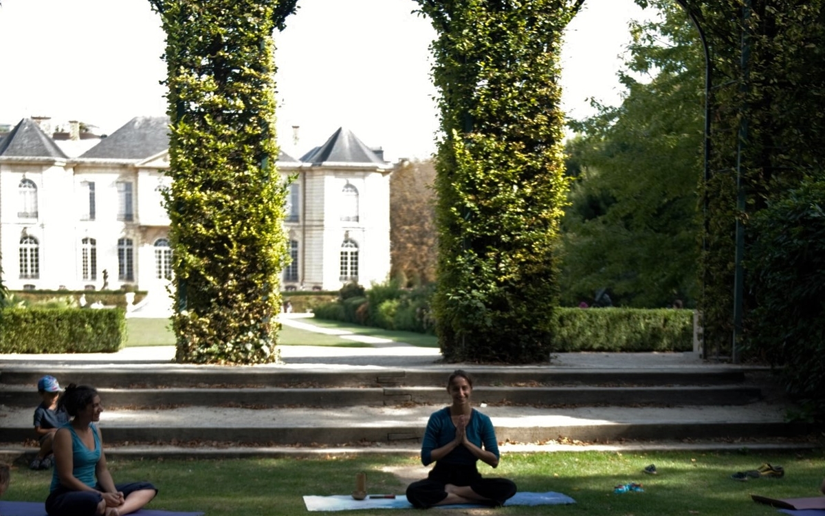Cours de Yoga dans le jardin de sculptures du musée Rodin