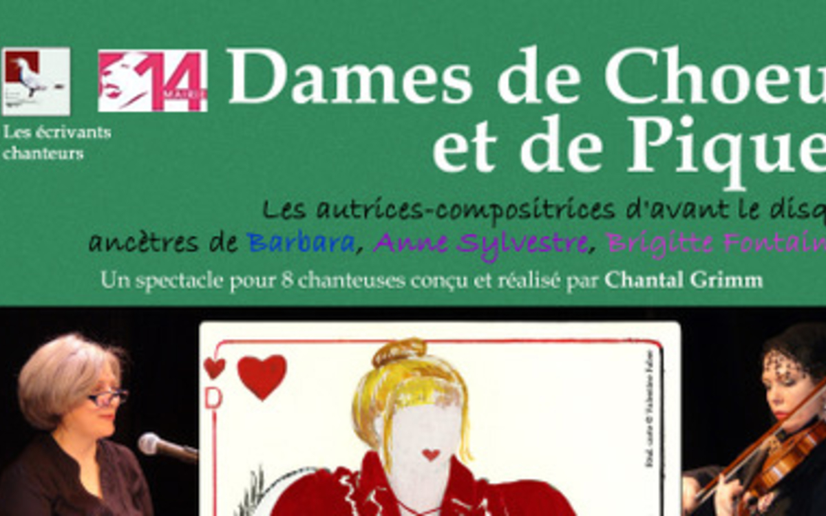 L’histoire des autrices et compositrices de chansons n’a pas commencé au XXème siècle avec Barbara. De tous temps, on a toujours donné aux voix féminines le soin d’interpréter des créations masculines. Or, des poétesses et des mélodistes il y en avait dans tous les milieux mais elles signaient rarement (sauf dans les salons aristocratiques). Au début du XIXème siècle une roturière, Marceline Desbordes-Valmore, fait carrière sur les planches. L’artisanat de la chanson poétique au féminin est né. Il ne pourra se poursuivre que dans l’éclat très ponctuel de circonstances favorables dans les théâtres ; ou dans l’ombre des cabarets où les femmes sont mal admises, avant l’apparition du disque. Trois des créatrices incarnées dans ce spectacle ont néanmoins laissé un nom dans la littérature. Mais elles seront huit sur scène : de la brodeuse en goguette à la diva de salon, de la courtisane en guinguette à l’anarchiste en prison, du génie féminin de l’opéra reconnue avant d’être oubliée, de la poétesse bas-bleu à celle qui invente des psaumes… Huit à neuf à raconter leur vie entre une ou deux chansons étonnantes de poésie et d’humour, accompagnées au piano et au violon.