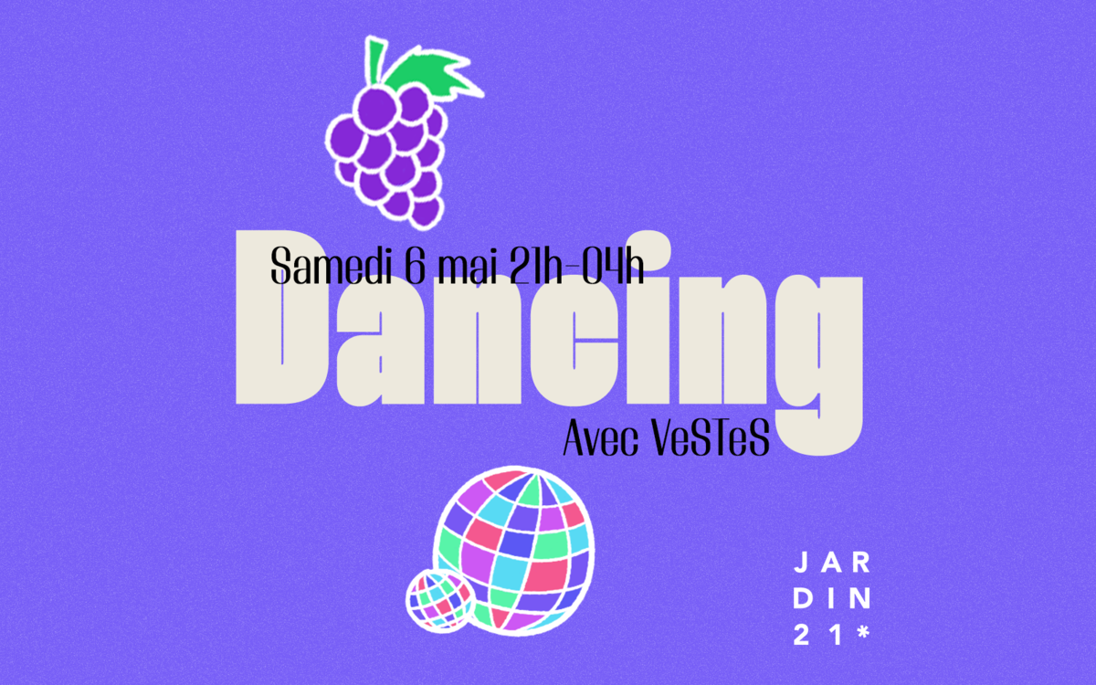 Pour la fête de réouverture du Jardin21 du 4 au 7 mai, on vous a concocté 4 nuits de fête en mode DANCING ! Retrouvez le samedi soir collectif VeSTeS qui va vous faire danser comme jaja sur notre dancefloor en plein air…