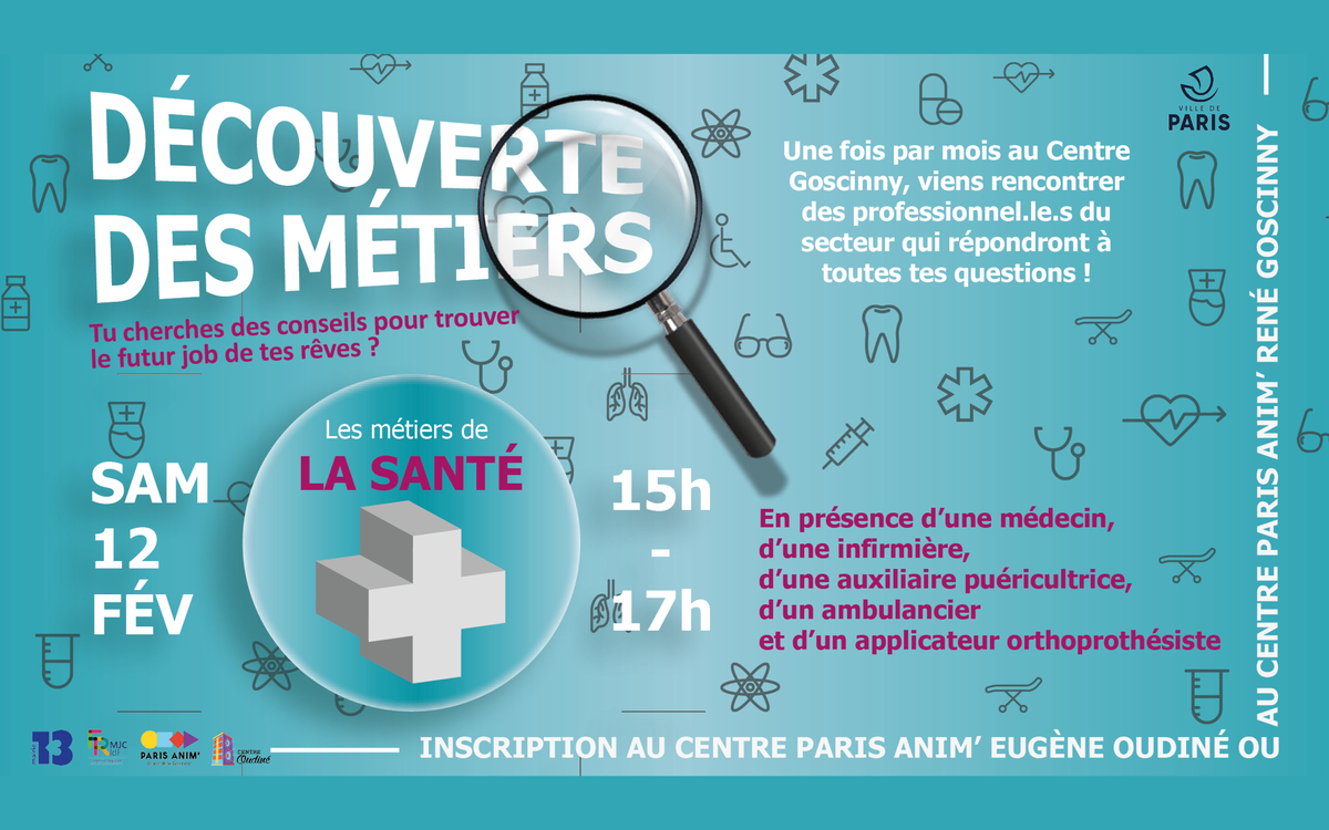 SAMEDI 12 JANVIER : découvre les métiers de LA SANTÉ de 15h à 17h au Centre René Goscinny.
