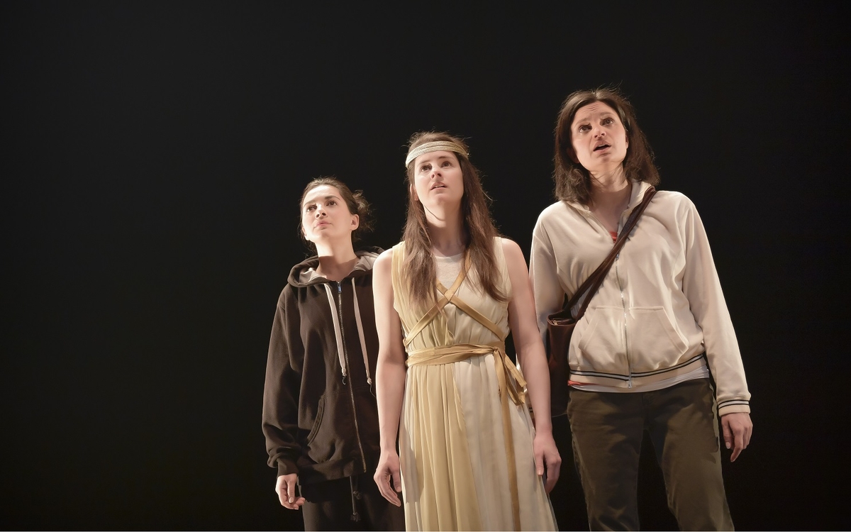 Auteure : Sarah Bertiaume ; Mise en scène : Martin Faucher, Emanuelle Kirouac-Sanche ; Avec : Ariane Castellanos, Célia Gouin-Arsenault, Sarah Laurendeau ; Scénographie : Max-Otto Fauteux ; Lumière : Alexandre Pilon-Guay ; Costume : Denis Lavoie ; Son : Michel F. Côté ; Vidéo : Pierre Laniel