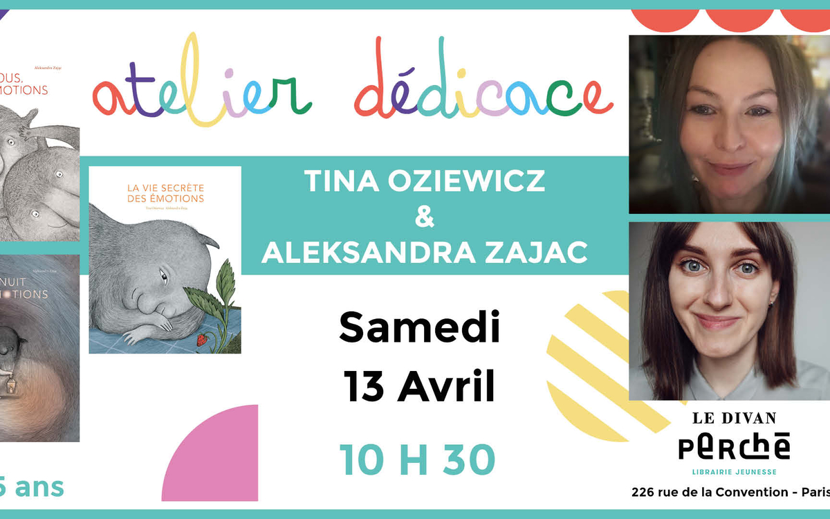 Nous recevons avec joie Tina Oziewicz et Aleksandra Zajac pour un atelier et une séance de dédicaces autour des albums “Nous les émotions”, “La Vie secrète des émotions” et “La Nuit des émotions” publiés aux Éditions La Partie.