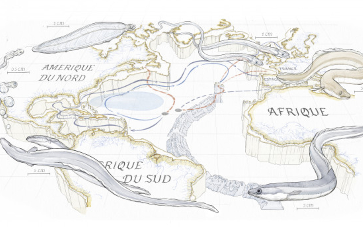 Le mystère de la migration marine des anguilles européennes et des grands courants de l'Atlantique Nord.