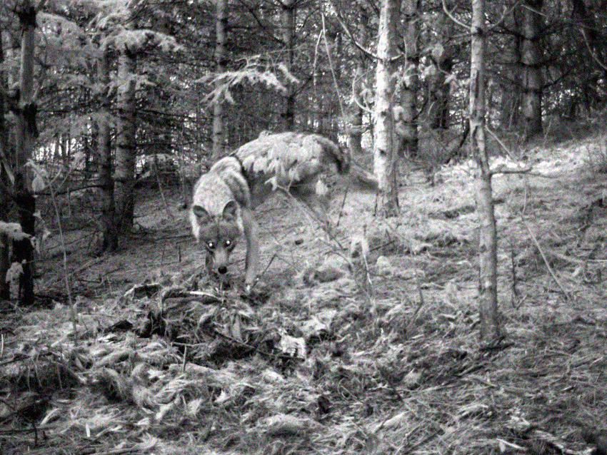 Le cadavre d’un cerf trône au milieu du cadre. Grâce à l’enregistrement de caméras de surveillance sur la durée, Terrestres dépeint la transformation de ce pan de territoire au fil des apparitions animales.