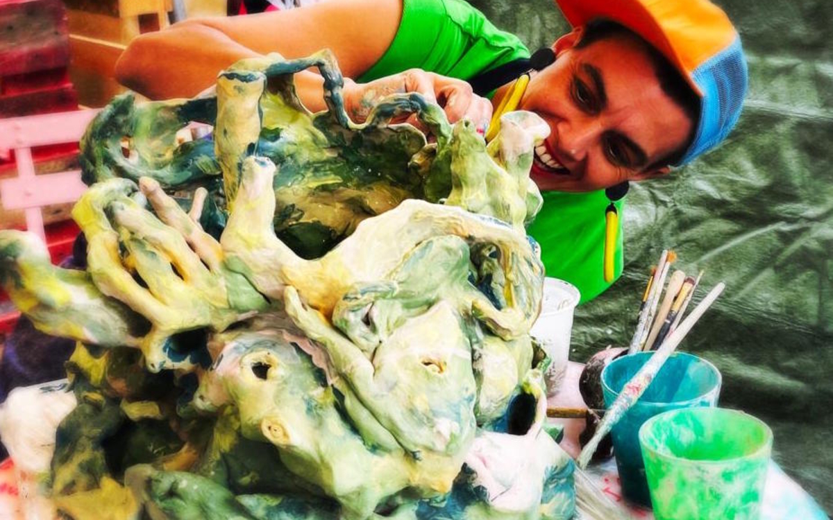 Création de céramiques en direct s'inspirant des récits des passants.