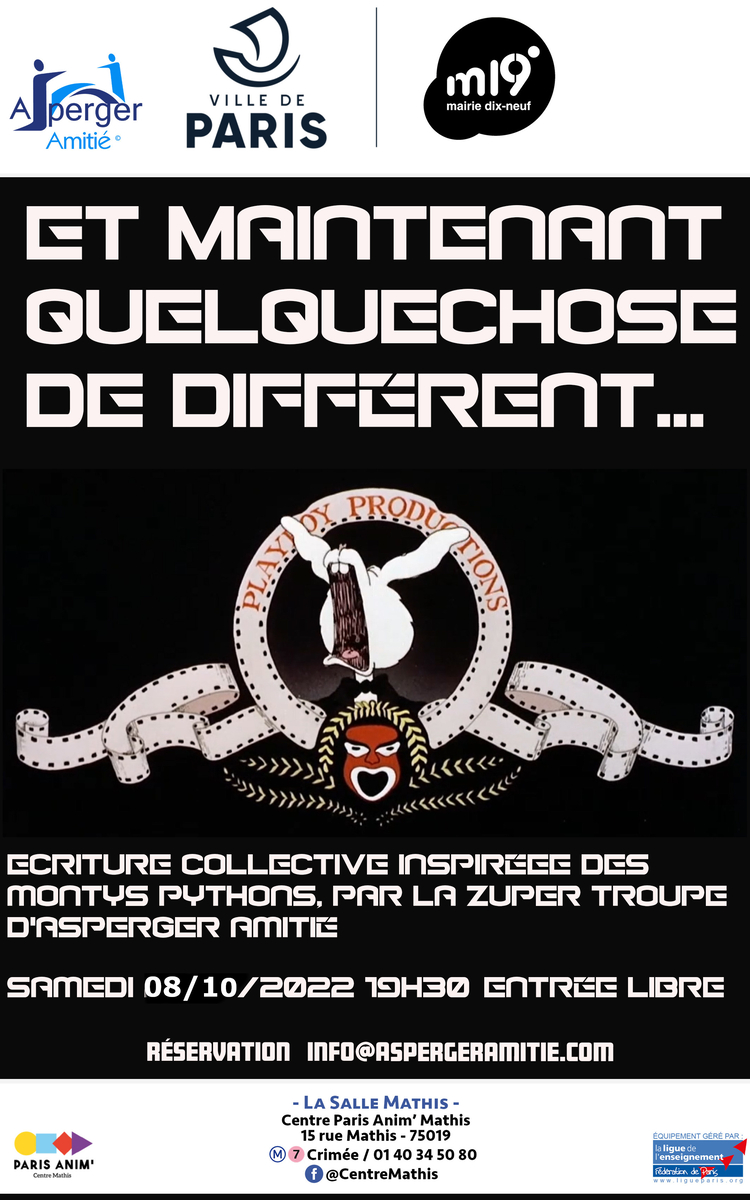 Est il juste de se faire Hara Kiri pour une fourchette sale ? Que se passerait il si l'on disait ce que l'on pense vraiment à un recruteur lors d'un entretien d'embauche ? Comment saboter les attendus d'une interview télévisé ? Autant de questions que la troupe de l'association Asperger Amitié aborde dans le spectacle Et maintenant quelque chose de différent !