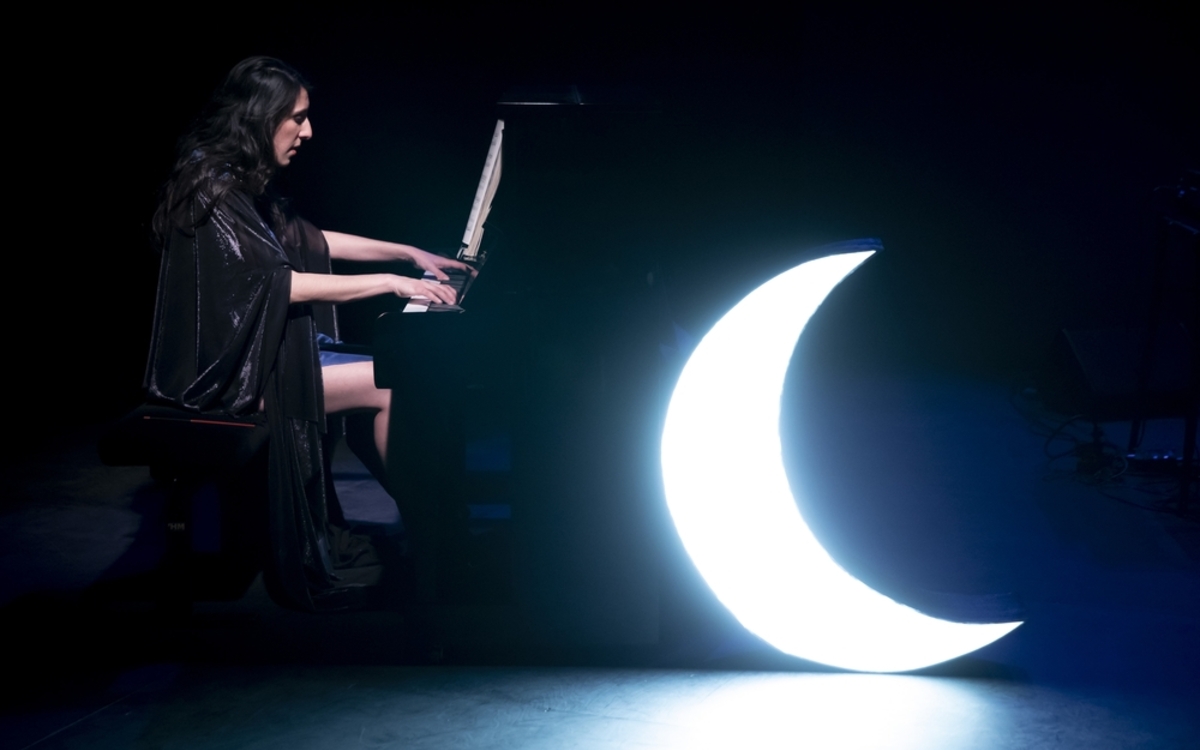 Elle qui s’est baptisée Achille, hommage au premier prénom méconnu de Claude Debussy, se met à dialoguer par son chant et son piano avec l’oeuvre de ce compositeur qui l’a façonnée. Dans un monde onirique et crépusculaire qu’elle construit avec son complice Thomas Caillou, les bruits de la mer s’accordent à ceux des touches du clavier. La puissance poétique et créatrice de Debussy y croise les influences de Björk, Barbara ou encore Oum Khaltoum. Un spectacle en forme de voyage apatride, libre comme un ciel étoilé