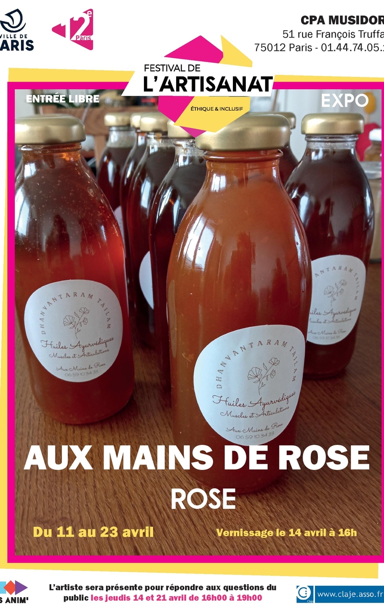 Aux Mains de Rose proposera dans le cadre de la Ruche qui dit OUI les jeudis 14 et 21 avril 2022 la vente de 3 huiles fabriquées en Inde et une huile réalisée de manière artisanale.