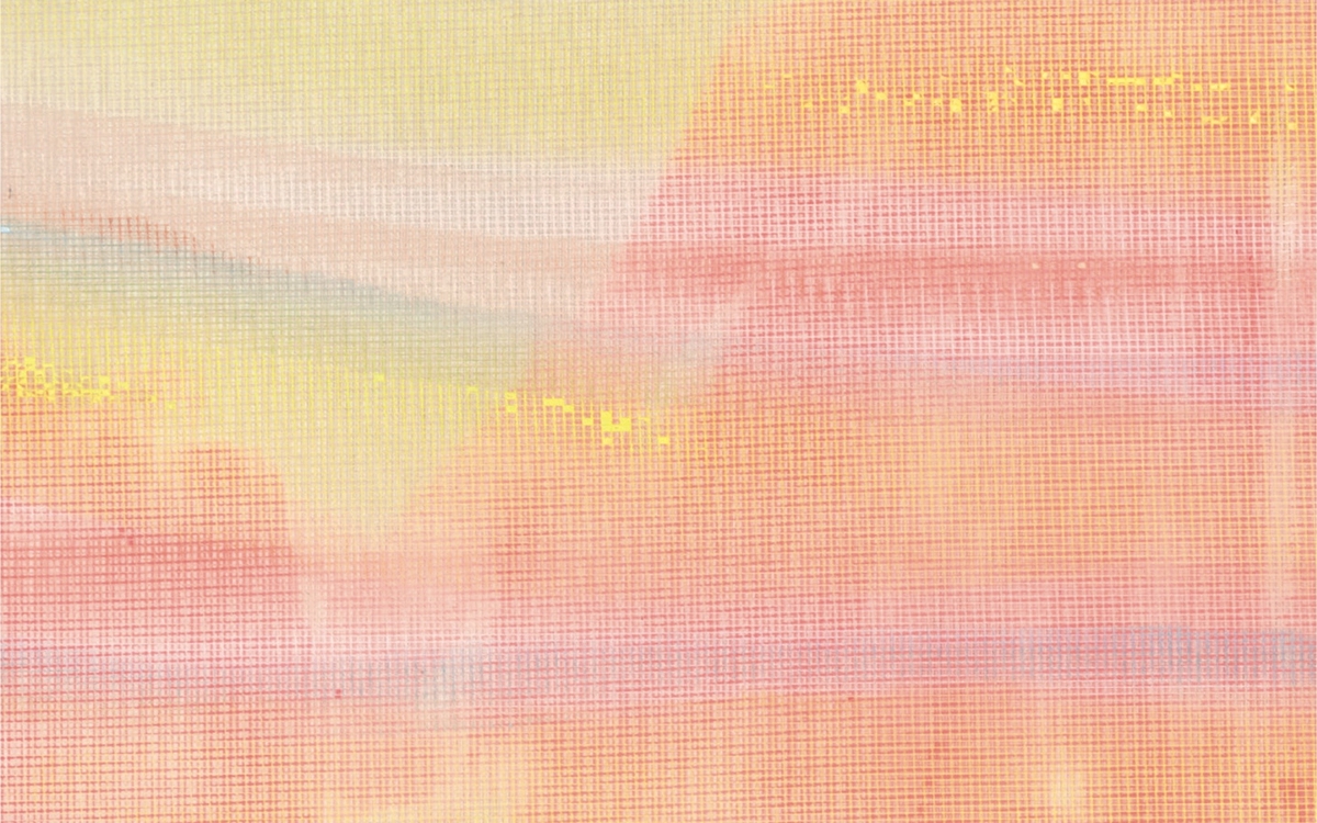 La grille -entendre, la moustiquaire- est l’élément matériel au cœur du travail de Julie Navarro. L’artiste en superpose des couches, en aligne ou décale les trous, peint leur surface, dont elle dégage des profondeurs nouvelles, précipitant leur métamorphose. Parce qu’elles constituent une trame, un maillage de lignes qui se croisent, se rencontrent, forment des alvéoles, les moustiquaires ont, pour la plasticienne, une dimension matricielle : tissus de cellules, elles portent en elles une fécondité possible, celle que charrie aussi, à travers leur densité humide et vivante, les tourbières -paysage que Julie Navarro a intensément exploré dans son travail, entre Paris et la Creuse, dont ses œuvres s’imprègnent. Le geste technique, avec humour et humilité, pince à linge, châssis artisanal et herbe creusoise pour support, se métabolise en opération poétique. On regarde à nouveau ces moustiquaires, leurs multiples réincarnations, de leur enfance comme ustensile des hommes à leur existence transformée en fragment de nature et/ou, broderie digitale.
